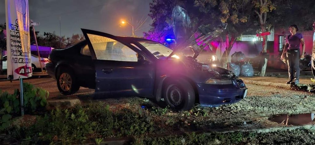 El conductor del auto Dodge Stratus iba transitando en la calle 39 por 112 cuando se percató que en la parte del motor estaba saliendo humo.