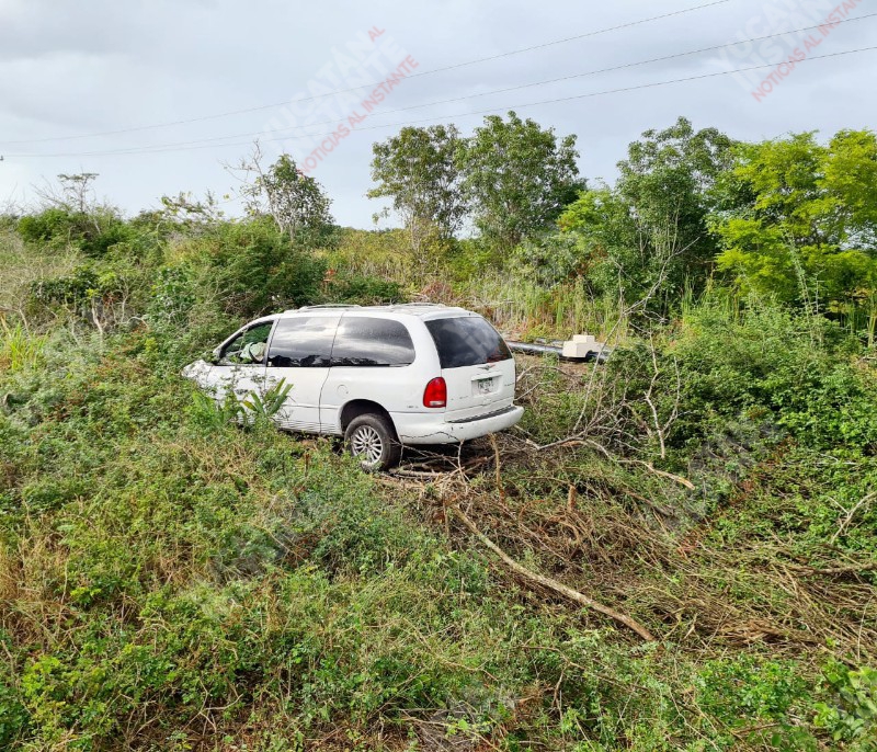 Celestún, Yuc., 1 de enero 2020.- Vecinos de Chunchucmil corrieron con suerte esta tarde, pues cuando viajaban en una unidad tipo van, explotó un neumático, causando su brusca salida de la vía federal Kinchil – Celestún.