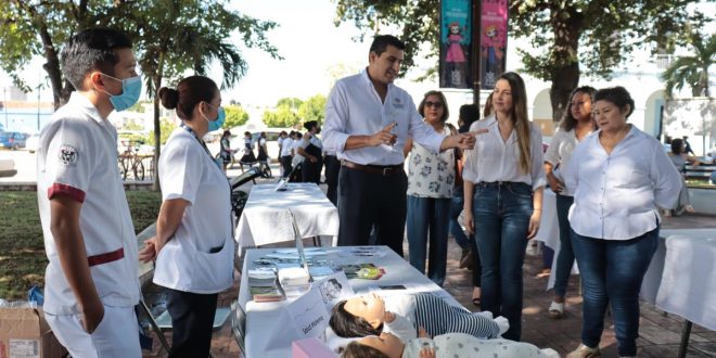 PROGRESO, 10 de Noviembre. – Con módulos de vacunacion, medicina general, orientación, entre otros; el H. Ayuntamiento que encabeza el alcalde Julián Zacarías Curi, llevó a cabo la Feria de la Salud.