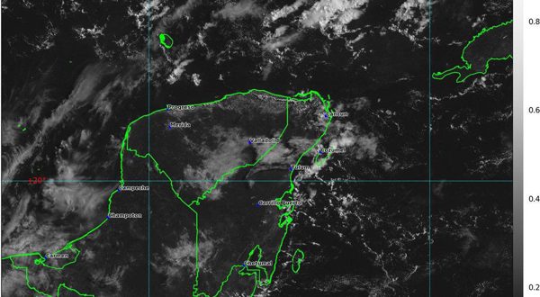 La presencia de un canal de bajas presiones favorecerá de chubascos a tormentas puntuales fuertes (25 a 50mm) en las zonas oriente, sur y centro de Yucatán. Para el resto de la entidad se esperan intervalos de chubascos (5 a 25mm)