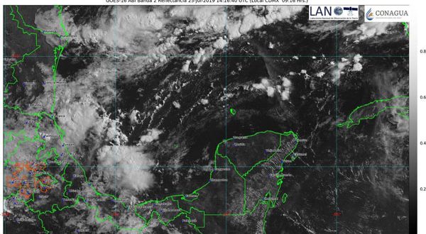 El paso de la onda tropical 21 favorecerá de chubascos a tormentas puntuales fuertes (25 a 50mm) en el centro, norte y noroeste de Yucatán. Para el resto de la entidad se esperan intervalos de chubascos (5 a 25mm)