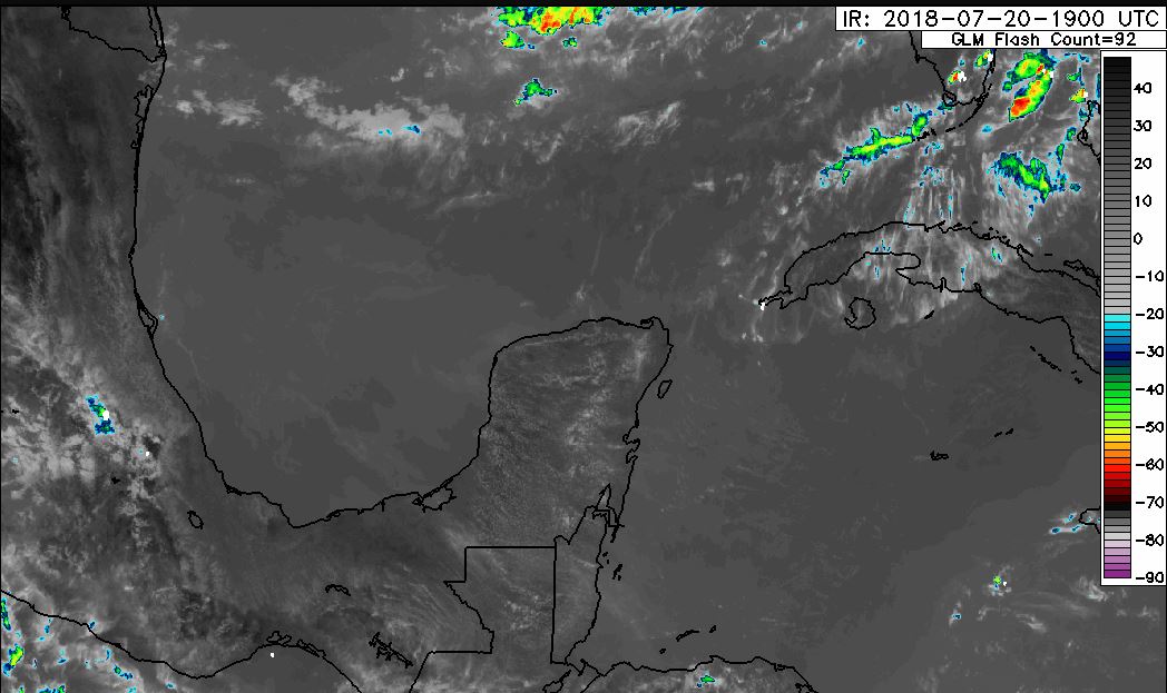 Para este día un canal de bajas presiones sobre el occidente de la región favorecería chubascos en el norte y sur de Campeche; norte y sur de Quintana Roo; y, en el centro, oriente, sur y noroeste de Yucatán.