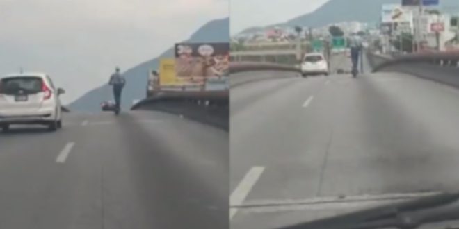Según el usuario de redes sociales que grabó dicho video, el joven iba en el carril de alta velocidad, por lo que lo iba “escoltando” para que no lo fueran a atropellar, debido a que tomó la avenida como si fuera pista del Parque Fundidora.