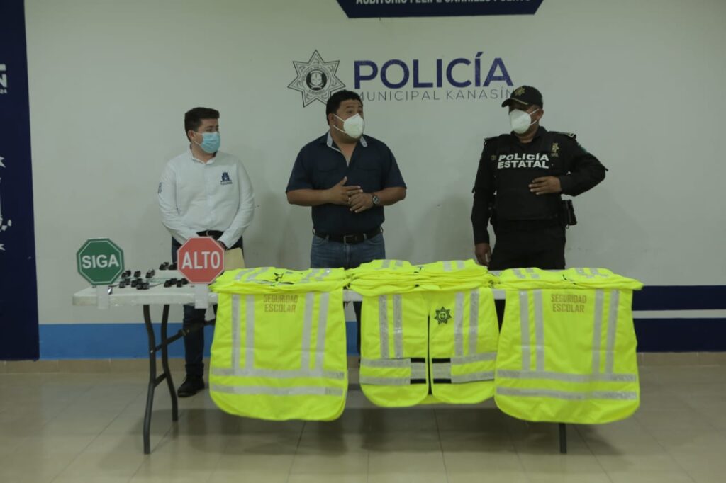 De igual manera, el presidente municipal de Kanasín entregó chalecos, señalizaciones y silbatos a los elementos que participarán en este programa.