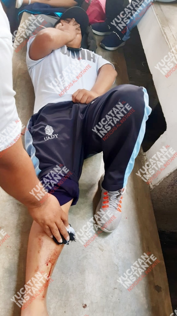 Hunucmá, Yuc., 16 de noviembre de 2019.- Por querer apantallar en el próximo desfile cívico de la Revolución Mexicana, los chavales “Pepe” N. y “Dopo” N. que hacían ejercicios de acrobacias con objetos punzocortantes terminaron lesionados en ambas piernas, en la cancha de la Casa de la Cultura del centro de Hunucmá.