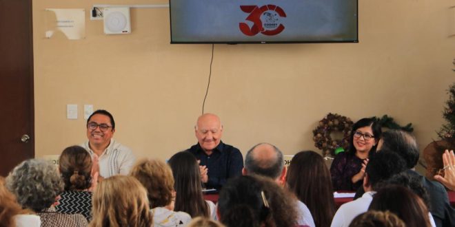 El libro “CODHEY 30 años de historia” fue presentado por el Presidente de la CODHEY, Miguel Oscar Sabido Santana; y por los autores, el periodista Manuel Triay Peniche y la Directora del Centro de Investigación Aplicada en Derechos Humanos de la CODHEY, Hissarlik González Cetz.