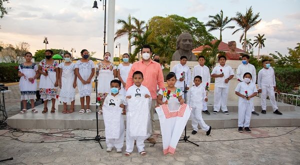 Previo al acto, las autoridades mencionadas, junto con el director del Instituto para el Desarrollo de la Cultura Maya (Indemaya), Erik Villanueva Mukul, atestiguaron la entrega de uniformes por parte de la Cámara Nacional de la Industria del Vestido (Canaive) delegación Yucatán a las niñas y niños del coro infantil “Tumben K’ay”, dirigido por el maestro Idelfonso May Caballero.