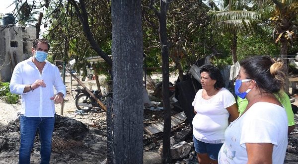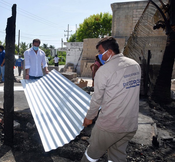 Progreso, Yucatán a 18 de julio de 2020.- Luego de que este jueves se reportara un incendio en la calle 19 por 56 del puerto de Chicxulub, el cual dejo sin hogar a dos familias, ayer por la tarde, el alcalde Julián Zacarías Curi acudió a dicha comisaría para acercar ayuda a los afectados.