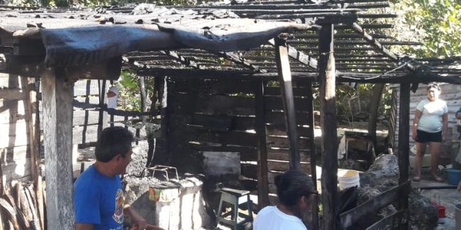 Dzilam González.— Dejar una sartén con aceite en el fuego ocasionó un incendio en un local de venta de comida, construido con materiales tradicionales, luego que el viento propició que las llamas alcancen las láminas de cartón.