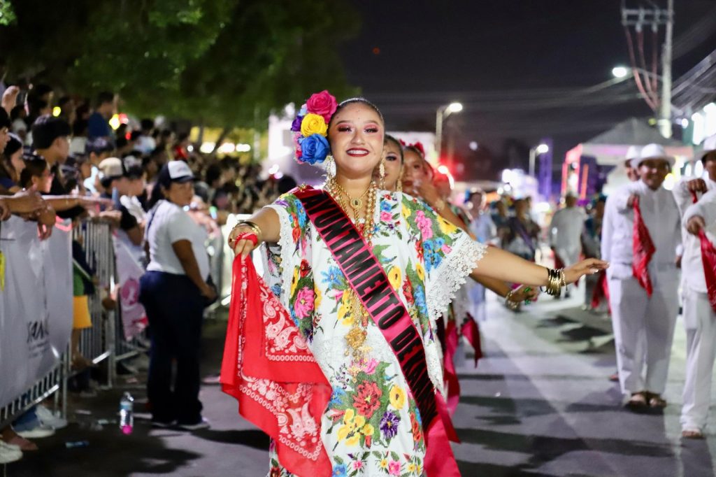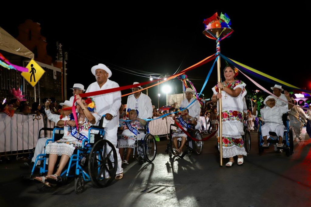 KANASIN, Yucatán a 4 de marzo 2025.– La Casa del Adulto Mayor “Amanecer Pilar de Luz’ se llevó los aplausos en la noche regional de lunes de carnaval, al presentar el baile de la ‘Cabeza de Cochino’ y otros bailes regionales del Estado.