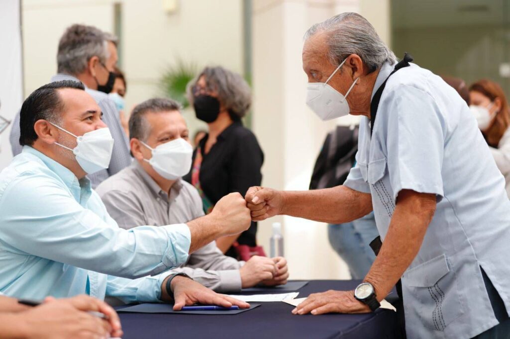 Desde temprano, poco más de cien meridanas y meridanos se registraron en las mesas de acceso a las áreas de atención, previo cumplimiento de los filtros de bioseguridad instalados en los bajos del Palacio Municipal, donde se les tomó la temperatura, aplicó gel antibacterial y se verificó que portaran el cubrebocas.
