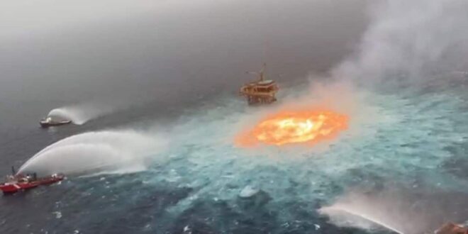Presuntamente el incendio ocurrió por hidrocarburo que se derramó de una válvula de control de un gasoducto que lo transporta entre plataformas.