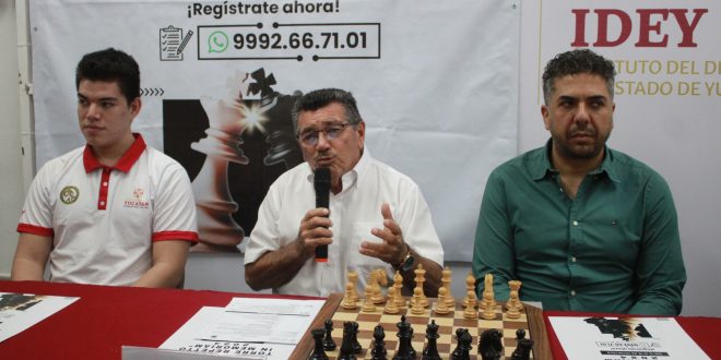 Mérida, Yucatán a 27 de noviembre de 2024.-Del 13 al 18 de diciembre Yucatán será sede de la edición XXXIV del Torneo Internacional de ajedrez “GM. Carlos Torre Repetto in memoriam 2024”, evento que fue presentado en rueda de prensa por Daniel Zacarías Martínez, organizador y presidente del patronato del torneo acompañado del director del Instituto del Deporte (Idey) Lef. Armín Lizama Córdova.