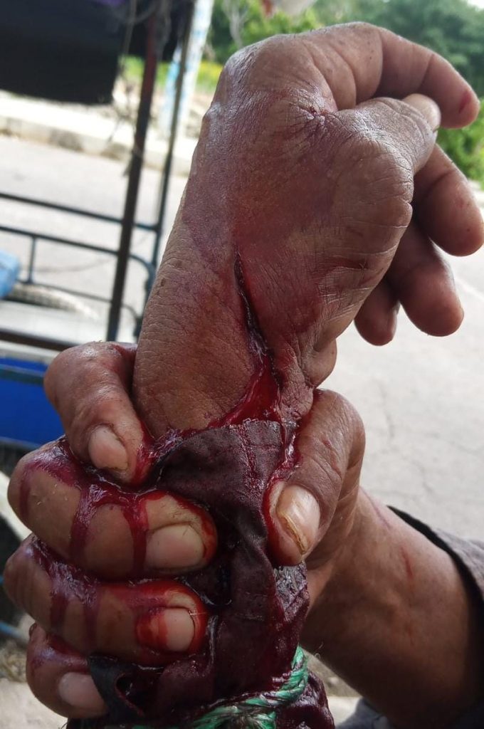 El chapita resultó con un corte de 12 centímetros y hasta posiblemente pierda el pulgar izquierdo, ya que aparecía el hueso. Ante esto tuvo que ser traslado de inmediato al Agustín H’Orán de Mérida para una mejor evaluación.