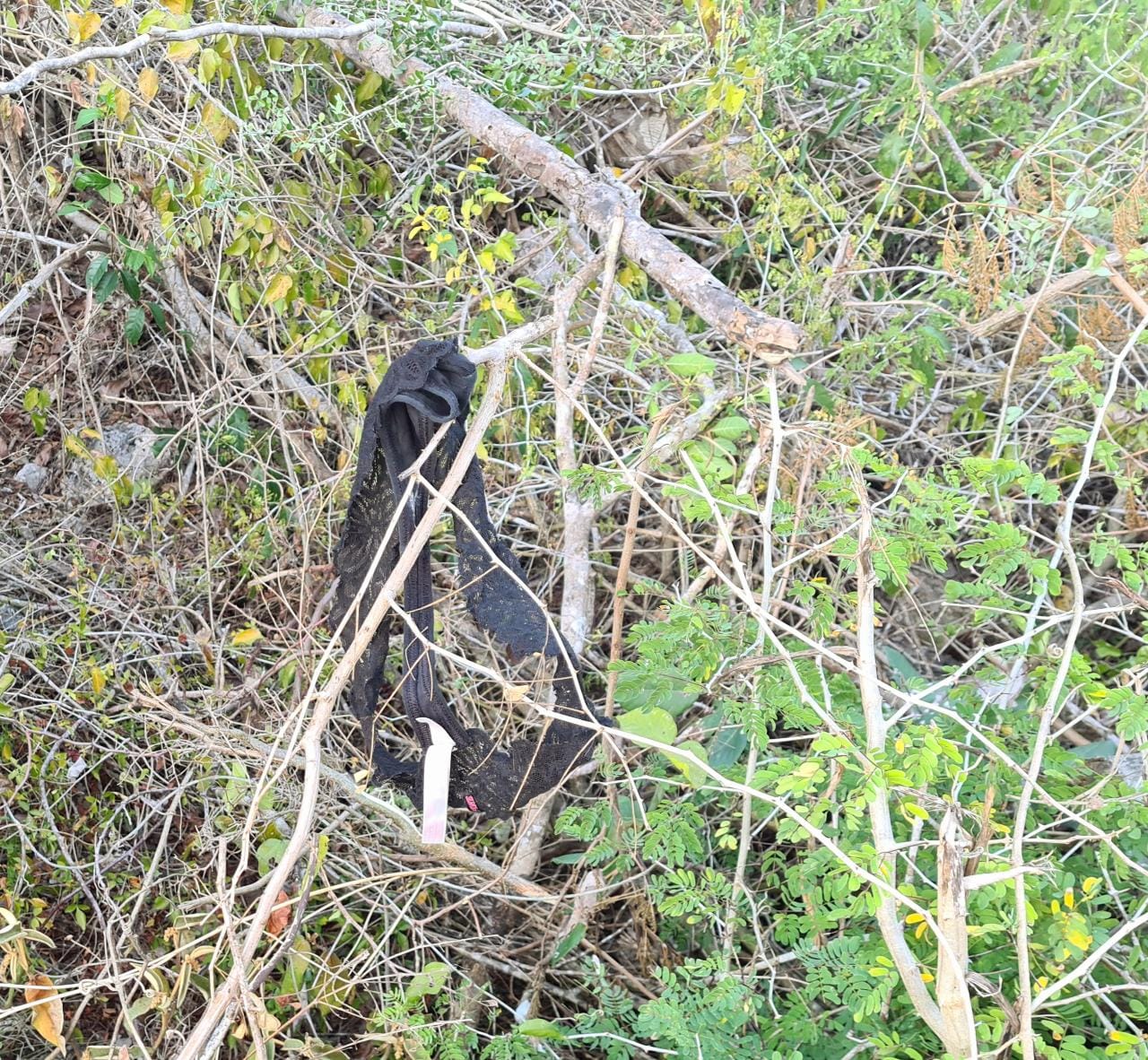 Por si fuera poco a un par de metros de la desastrosa salida de dicha a nave estaba colgado una tanguita negra de los arbustos, esto último ignoramos como salió volando.