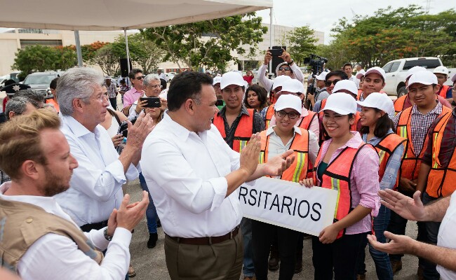 Ante estudiantes y autoridades universitarias, el mandatario resaltó que en dicho período se han impulsado obras trascendentales para mejorar la conectividad en la entidad, como la renovación del Periférico de Mérida y la construcción del distribuidor vial de la entrada de Progreso.