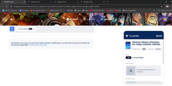 Al ingresar a ambas plataformas, no muestran los horarios o indican que las funciones para Demon Slayer no existen. Las personas que logran entrar, tampoco pueden seleccionar el cine al que desean acudir.