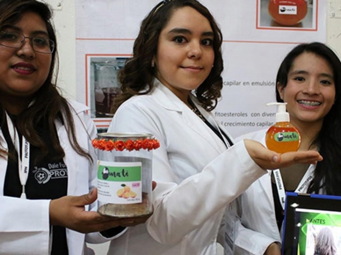 Al evitar que se evapore la humedad se genera un efecto antifrizz, apuntaron las alumnas politécnicas Brenda Hernández Santos, Denisse Escalera Suárez y Eliza Arévalo García.