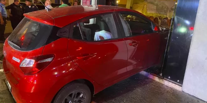 El coche se subió a la banqueta y se estrelló contra la entrada principal del restaurante.