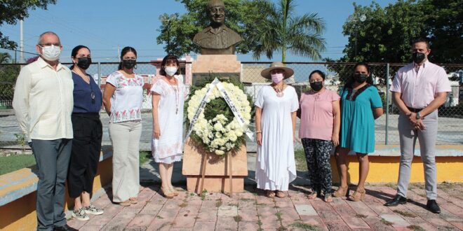 Mérida, Yucatán, 4 de agosto de 2021.- En respuesta a la encomienda del Gobernador Mauricio Vila Dosal de enaltecer la memoria de los personajes que han dado identidad al estado, esta mañana la titular de la Secretaría de la Cultura y las Artes (Sedeculta), Loreto Villanueva Trujillo, encabezó la ceremonia por el 11 aniversario luctuoso de Héctor Herrera “Cholo”.