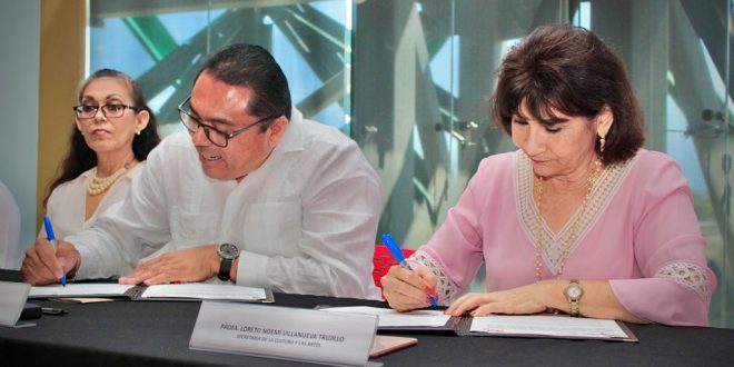 El acuerdo signado por la titular de la dependencia, Loreto Noemí Villanueva Trujillo y el presidente del organismo, Miguel Óscar Sabido Santana, también tiene la finalidad de ampliar el intercambio cultural, entre las partes, y particularmente en materia de promoción y divulgación de derechos humanos.