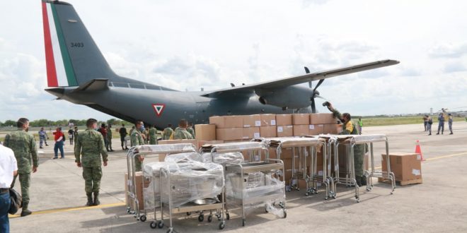 Despegó del Aeropuerto Internacional de la Ciudad de México, el avión Spartan C-27J, perteneciente a la Fuerza Aérea Mexicana, mediante un vuelo logístico que aterrizó a las 15:18 horas, en la Base Aérea Militar No. 8 de esta ciudad, transportando aproximadamente 6.6 toneladas de insumos médicos, mobiliario y equipo de protección personal para equipar el Hospital Militar Regional de Especialidades, la Unidad Operativa de Hospitalización del 11/o. Batallón de Infantería y la Unidad Operativa de Terapia Intensiva del 7/o. Batallón de Ingenieros de Combate.