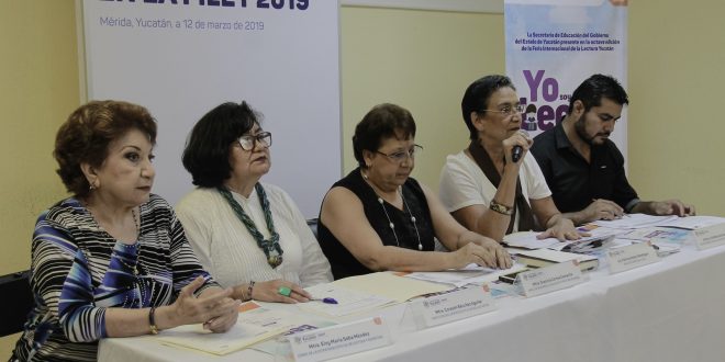 Asistieron a la rueda de prensa las coordinadoras del Programa Estatal de Lectura y Escritura, Elsy Seba Méndez, y académica del de Escuelas de Tiempo Completo, Patricia Ostos Mondragón, junto con la directora del CEBA, Corazón Sánchez Aguilar, y el investigador de la Casa de la Historia de la Educación de Yucatán, Cristóbal León Campos.