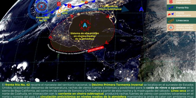 MÉRIDA, Yuc., 12 de marzo 2021.- En las próximas 24 horas, se prevé cielo mayormente despejado a parcialmente nublado, sin probabilidad de lluvias. Temperaturas calurosas en el día y frescas a templadas al amanecer.