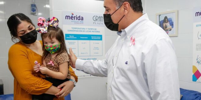 Mérida, 12 de octubre de 2021. En esta administración continuamos sensibilizando a la población sobre la práctica de la lactancia materna, sobre todo en los centros de trabajo y comerciales con el fin de fomentar la instalación de lactarios que permitan garantizar un desarrollo infantil y una maternidad segura, afirmó el alcalde Renán Barrera Concha.