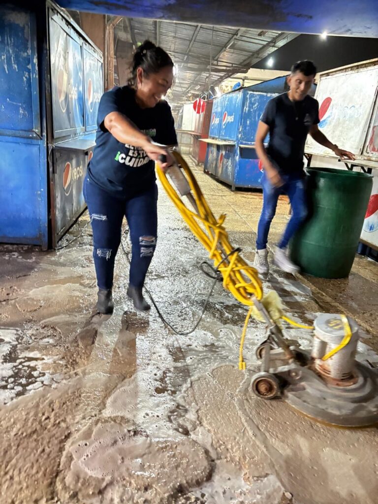 En esta ocasión, los trabajos se concentraron en el área conocida como “La Nave”, donde se realizó una limpieza profunda en pisos, paredes y puestos, utilizando jabón, desengrasante y el esfuerzo conjunto de quienes participaron en la intervención.
