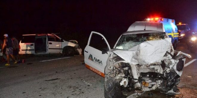 TIZIMÍN, Yuc., 1 de mayo 2021.- Al menos seis personas fueron trasladadas a diversos hospitales de esta ciudad, luego de un aparatoso accidente registrado en el tramo Tizimín-Buctzotz, cuando el conductor de uno de los vehículos invadió el carril contrario.