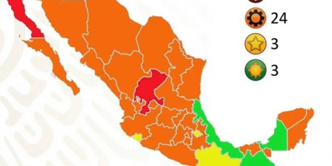 Aunque ya hay 3 estados en color Verde (riesgo bajo), aún quedan 2 en Rojo, 24 en Naranja y 3 en Amarillo. En ese sentido, diez entidades están en el índice con el que podrían llegar al nivel Máximo de Riesgo COVID.