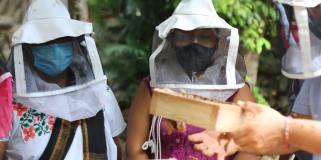Mérida, Yucatán, 15 de octubre de 2021.- “Desde niña, veía cómo mi abuelo tenía sus abejas y, aunque me llamaba mucho la atención, nunca imaginé que yo también podía trabajar con ellas”, expresó Miriam Guadalupe May Ku, de San Antonio Sihó, quien es parte del proyecto “Mujeres mayas preservando las abejas sin aguijón”.