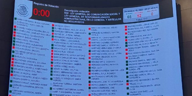 Los legisladores votaron en lo general y en lo particular el dictamen que reforma la Ley General de Comunicación Social y de la Ley General de Responsabilidades Administrativas.