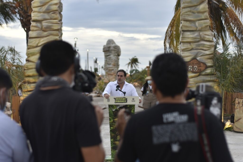 PROGRESO, 31 de mayo 2022. – Recientemente, el alcalde Julián Zacarías Curi, en compañía del Gobernador Mauricio Vila Dosal, cortaron el listón y develaron la placa inaugural del Sendero Jurásico, primer parque temático impulsado por el gobierno municipal del Progreso en toda su historia. A pesar de que aún no abre al público general, se espera que una vez abiertas sus puertas, el impacto hacia la comunidad sea inmediato y positivo.