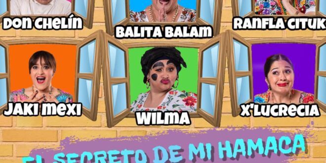 Don Chelín, Balita Balam, Ranfla Cituk, Jaki Mexi, Wilma y X´Lucrecia tendrán mucho que contar, a través de la obra “El secreto de mi hamaca”, cuya funciones serán este viernes y sábado a las 20:30 horas, en el Centro Cultural Dante, los boletos están a la venta en taquilla y al 9992 41 42 43 y 9993 14 87 87. El libreto es de Erik Ávila “Cuxum”.