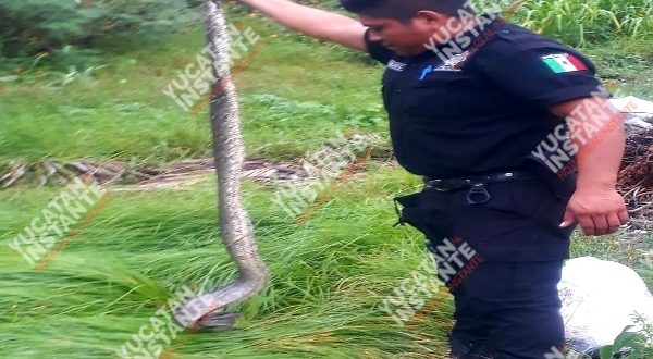 Kinchil, Yuc., 23 de octubre de 2019.- De nueva cuenta en esta semana, la Policía Municipal rescató otra tremenda ochcán que estaba en un patio vecino de la colonia “Japón” al norte de este municipio.