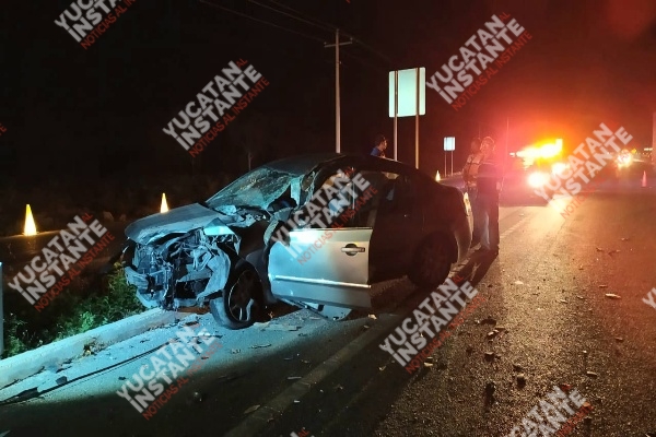 Umán, Yuc., 18 de marzo 2020.- Un accidente con suerte sobrellevo un señor de 63 años que guiaba un vehículo Nissan Sentra, tras estampar detrás de una mole de acero la noche de ayer en la vía federal Mérida – Campeche.