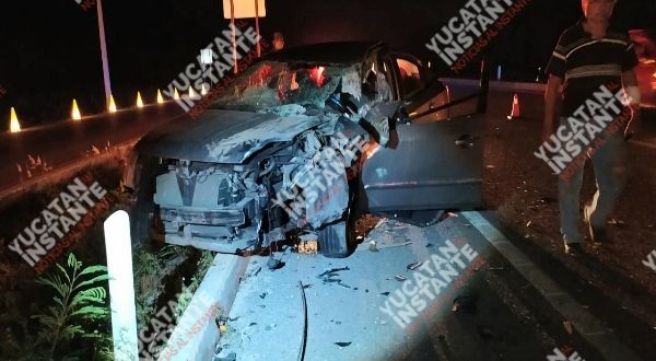 Umán, Yuc., 18 de marzo 2020.- Un accidente con suerte sobrellevo un señor de 63 años que guiaba un vehículo Nissan Sentra, tras estampar detrás de una mole de acero la noche de ayer en la vía federal Mérida – Campeche.