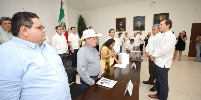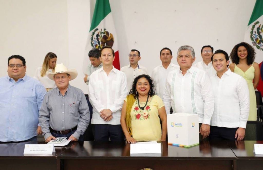 Por instrucciones de Fritz Sierra y en cumplimiento a lo dispuesto por la Ley, el encargado del Despacho de la Secretaría General de Gobierno (SGG), José Carlos Puerto Patrón y el Consejero Jurídico del estado, Yussif Heredia Fritz, entregaron a la presidenta de la Mesa Directiva de la actual legislatura, Neyda Pat Dzul, el documento que además de la versión en español también está en lengua maya y Braille.