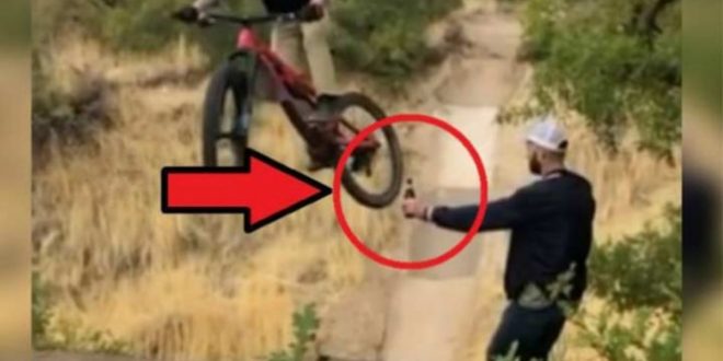 A últimas horas en las redes sociales y WhatsApp se compartió masivamente un video de un motociclista abriendo una botella con la llanta en plena acrobacia.