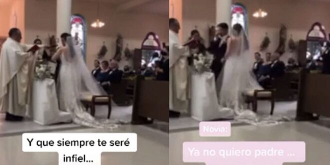 En el altar, el joven dice: Irasema, recibe este anillo como símbolo de mi amor por ti y que siempre te seré infiel. Algo que causó sorpresa y una risa en la novia, quien de broma contestó que ya no quería casarse. Además, el padre continuó con la broma y comenzó a rezar el Padre Nuestro.