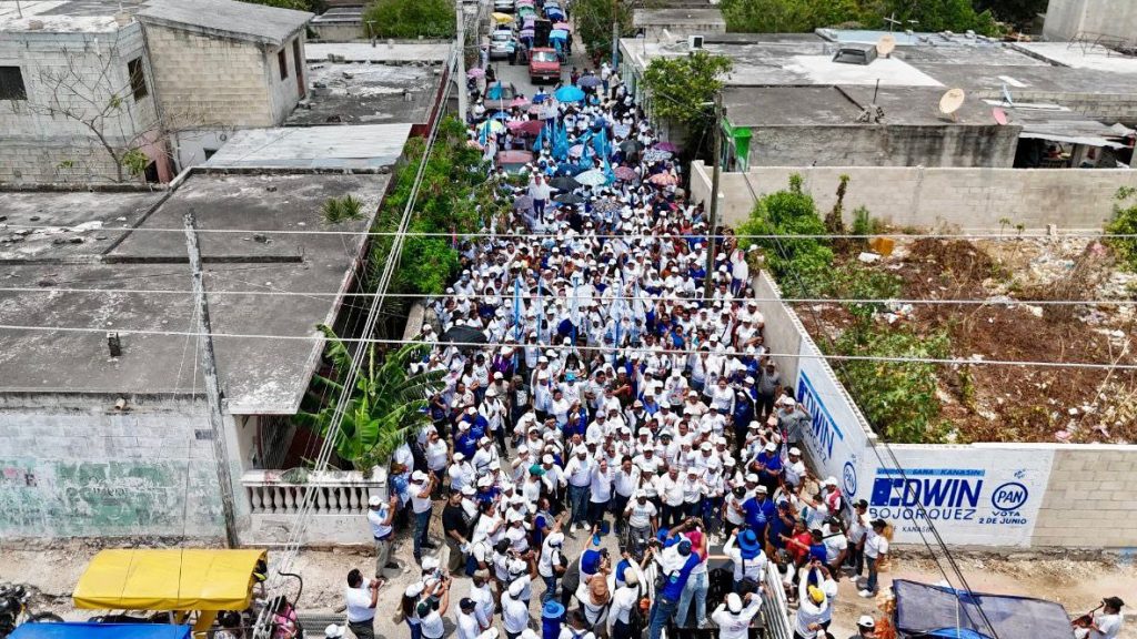 Kanasín, Yuc., 29 de abril 2024.- Amplio respaldo, apoyo y el deseo de que el municipio siga avanzando como en los últimos tres años, es lo está mañana encontró Edwin Bojórquez Ramírez, candidato del PAN a la alcaldía de Kanasín, al realizar una caminata por el centro de la ciudad, en la que participaron un gran número de simpatizantes y ciudadanos.