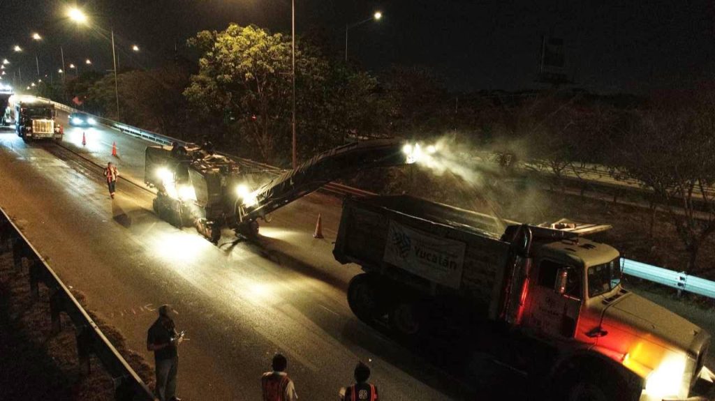 Mientras que las labores en el quinto tramo abarcaron del kilómetro 31+100 al 31+400 del cuerpo exterior de la vía en los carriles de baja velocidad y central, a partir de la rampa de la salida a Temozón.