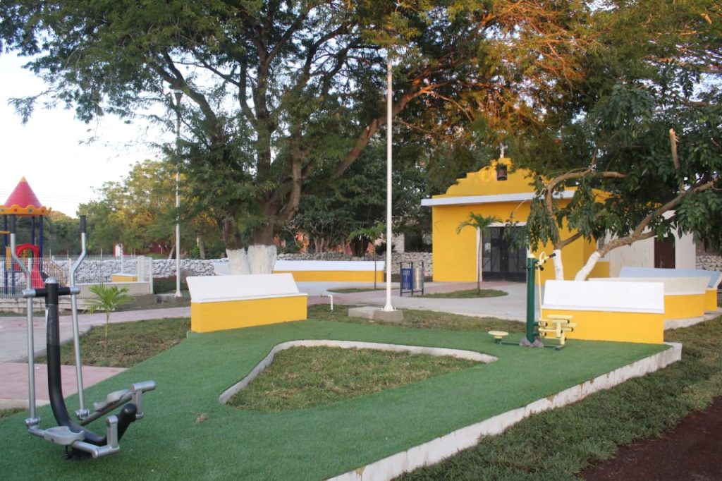 Siguen las obras en Hunxectamán, Umán; no sólo vialidades, ahora también parque