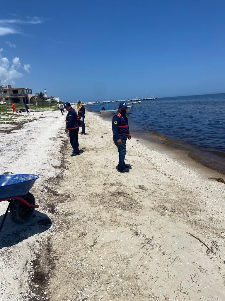 Personal del Gobierno del Estado continúa con las labores de limpieza, a las que hoy domingo se suma elementos del Ejército Mexicano y veraneantes.