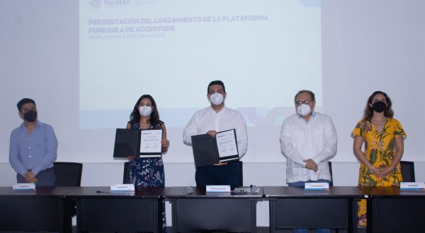 Mérida, Yucatán, 26 de julio de 2021.- Como parte de la estrategia del Gobernador Mauricio Vila Dosal para preparar capital humano en servicios tecnológicos e innovación, que trabaja con Accenture México desde inicios de este año, se anunció el lanzamiento de Fundaula, una plataforma en línea de formación gratuita y abierta al público en general, donde las y los yucatecos pueden acceder a una amplia gama de cursos e itinerarios, accesibles en cualquier dispositivo digital, con una navegación fácil e intuitiva.
