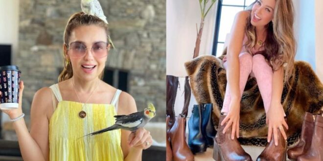La esposa de Tommy Mottola luce sandalias doradas, anteojos de sol en color rojo, mientras que su cabello está hecho una coleta, a un costado de la piscina en su casa en Estados Unidos.