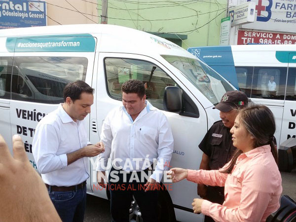 Desde los bajos del Palacio Municipal de Kanasín, Vila Dosal recordó qué desde el inicio de su gestión como gobernador ya se han entregado 70 vehículos de traslado médico y con esta aportación ya se abarcó los 106 municipios.