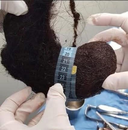 Durante su evaluación, se detectaron signos como distensión abdominal, dolor y anemia severa. Una gastroscopia confirmó la presencia de un tricobezoar con extensión intestinal, característico de este inusual síndrome.